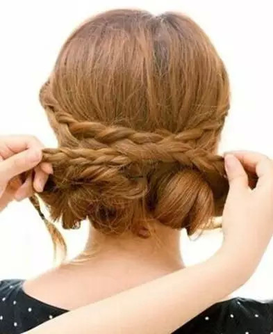 步骤5:最后,将麻花辫缠绕于发髻并用发卡固定。从后面看起来,既俏皮又不失优雅,既巧妙又充满美感。