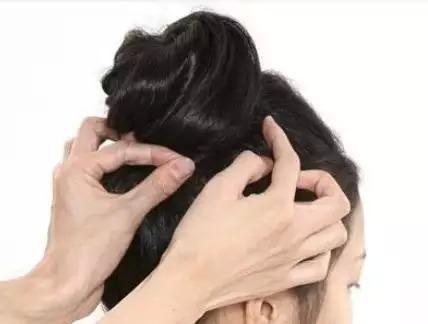 STEP1:将头发在脑后扎一个高马尾。为了让马尾看上去既能减龄,又有瘦脸的效果。我们需要找到从嘴角到耳朵上方一直延伸到后脑勺的延长线。在后脑勺的延长线的位置就是马尾最适合的高度。