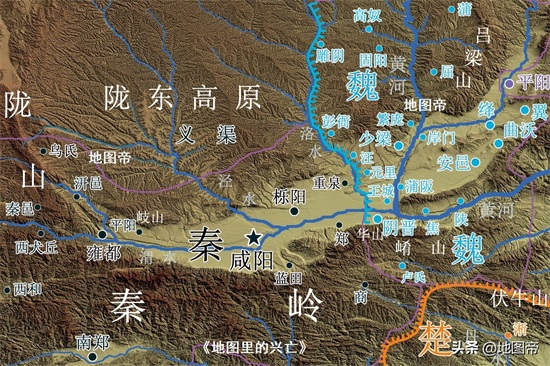 关中平原呈椭圆形,面积约3.4万平方千米。渭河源于鸟鼠山,从西往东贯穿关中平原,注入黄河,长约787千米。渭河上游流经陇西高原,多泥沙。