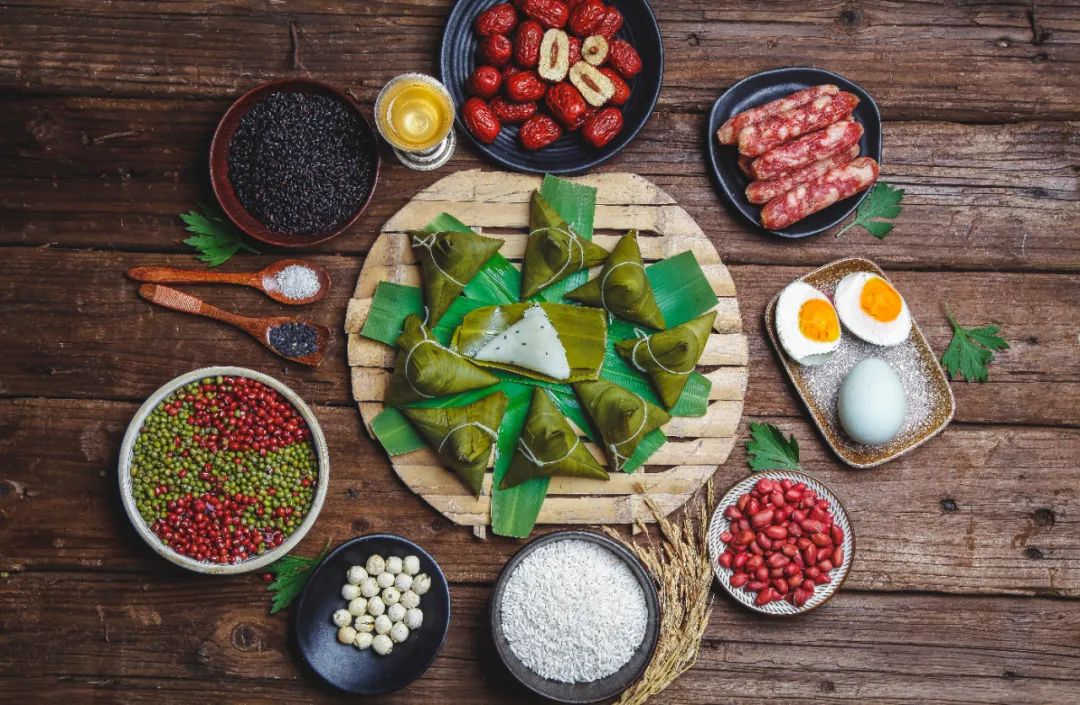美食端午,粽香千年。粽子最早出现在春秋时期,当时主要有两种粽子,用菰叶(茭白叶)包黍米成牛角状,称“角黍”;用竹筒装米密封烤熟,称“筒粽”。到晋代,端午食粽子成为全国性风俗,西晋《风土记》记载:“仲夏端午,烹鹜角黍。”到了唐代,粽子已成为端午节的必备食品,姚合的“渚闹渔歌响,风和角粽香”反映了当时食粽之普遍。宋代时,出现了用“艾叶浸米裹之”的艾香粽子。元代的粽子包裹料已从菰叶变革为箬叶,突破了菰叶的季节局限。明代出现用芦苇叶包的粽子,附加料已出现豆沙、猪肉、松子仁、枣子、核桃,品种更加丰富多彩。今天流行的“火腿粽子”最早出现在清代乾隆年间。