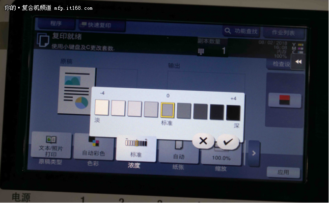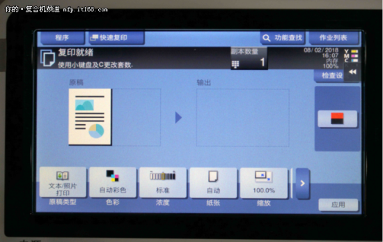 在多数情况下,在PC端点击确定按钮后,复合机就会自动开始文印作业了,不过这里需要提一句的是,有一些企业处于便于管理以及安全的考虑,搭载了刷卡打印系统,需要工作人员前往复合机设备处刷卡后确认文印任务才会开始文印作业。