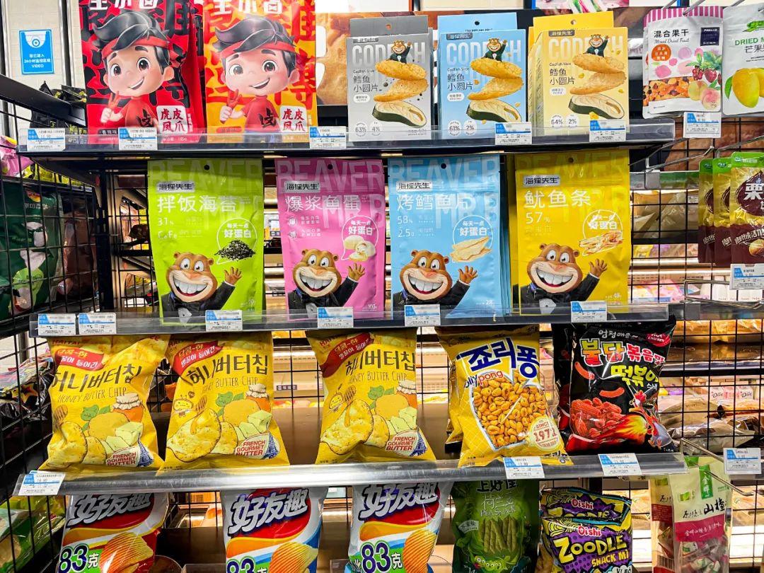同品类传统品牌是走大单品的策略,而海洋零食是一个小版块,便利店一般只有3-5个挂钩,但却要对接多家不同经销商才能挂满,管理起来很麻烦。“海狸先生”给它们提供了一个打包的解决方案,所以便利店,包括大超市,都非常欢迎“海狸先生”品牌的入驻。