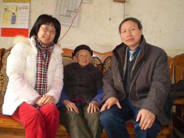 1997年,苏智良、陈丽菲在崇明岛探望幸存者陆秀珍老人。