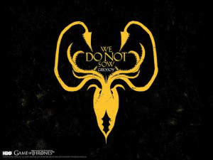 家徽:黑底红色的三头火龙,三个头分别代表伊耿和她的两个妹妹。