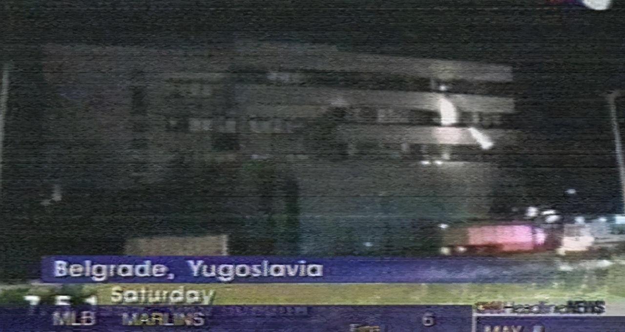中国驻南联盟大使馆1999年5月7日晚遭到轰炸后媒体的现场报道画面