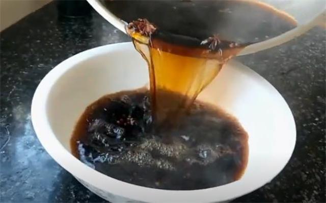 3.锅内加一碗清水,再加同样多的一碗陈醋,半碗冰糖,再加点八角和花椒,一勺食盐,锅内水烧开以后再煮两分钟倒出,倒到碗里放凉。
