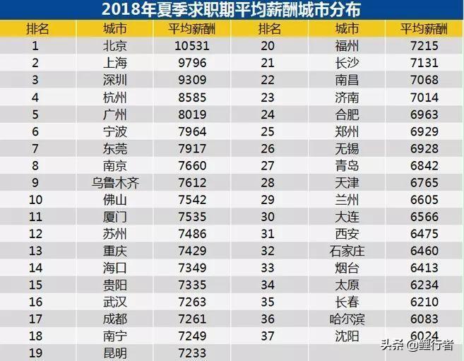 我们先来看一张2018年夏季的求职的平均薪酬水平,从图中我们可以看到,北京的平均薪酬达到了10531元,即使是最低的沈阳也有6024元,这让大家会产生一种错觉,现在的工资水平都这么高了吗?5000元难道还排不上名吗?其实事实并非是这样的,首先这个是平均下来的,就像2017年联想CEO杨元庆的薪酬达到了1.56亿,和我平均一下,我年薪也差不多近8000万人民币。其次这个是求职的平均薪酬,并非是实际薪酬,就像你去其他公司应聘或者在网上提交简历一样,都会把期望的薪酬往高了填,毕竟万一公司要是真的给你那么高的薪酬呢?所以大家的实际薪酬并没有那么高。