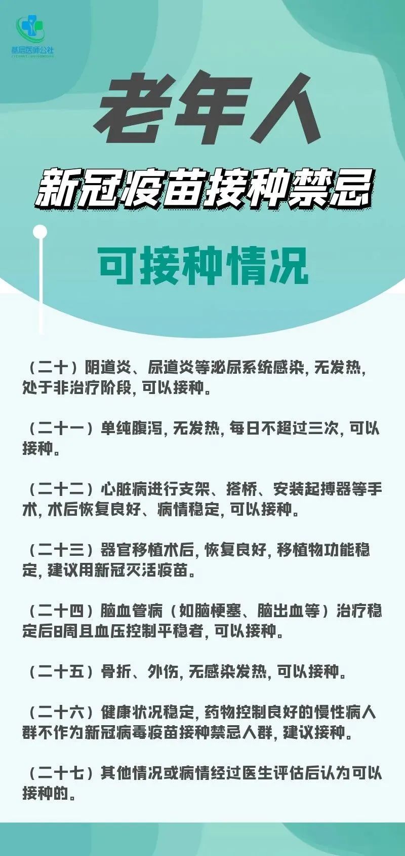 20.恶性肿瘤术后恢复良好,不再进行放化疗者; 肾病综合征患者;肾移植后服用免疫抑制药物;艾滋病患者、HIV感染者,建议接种灭活疫苗或重组亚单位疫苗。