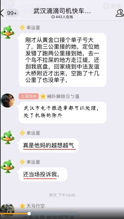 对话中,这个“幸运星”在描述他当天的经历:空跑了几公里,还被投诉。