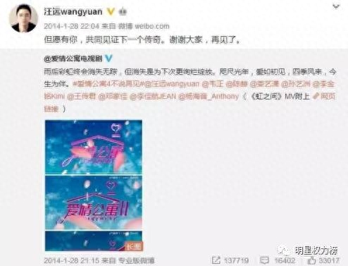 于是乎就算《爱4》结束之后,主角们发的微博都带着点再也不见的伤感。。。