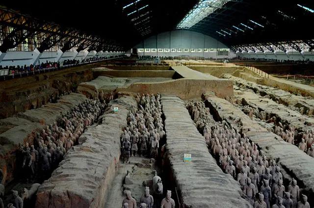 秦始皇兵马俑博物馆是中国最大的原址博物馆,主要包括兵马俑博物馆和秦始皇陵两大部分。兵马俑是秦始皇陵的从葬坑,据考古推断,这几座从葬坑象征着始皇生前的宿卫军守卫着陵园,而三座坑是按兵法布阵的,游客现在可以观看挖掘出土后的一、二、三号坑中的兵马俑,其中一号坑为主陈列室,最前面的是前锋,后面紧紧跟随的是步兵、战车,整个军阵布局严密,酷似待发之势,令人联想到当年始皇帝金戈铁马,横扫六合,所向披靡的声威。