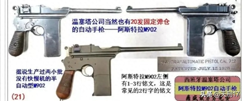 值得一提的是,这种大肚匣子如果是西班牙产的,而且又有160毫米以上加长枪管的话,那就还有一个独特的名字——“西班牙大腰鼓”。这类枪要符合三个典型的特点,就是西班牙产、枪体很大,而且有大弹匣在腰部鼓出来。它的真实身份,其实是温塞塔公司的阿斯特拉902/903型。