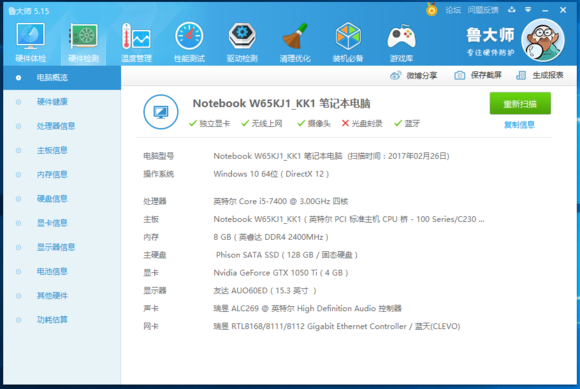 鲁大师硬件参数截图