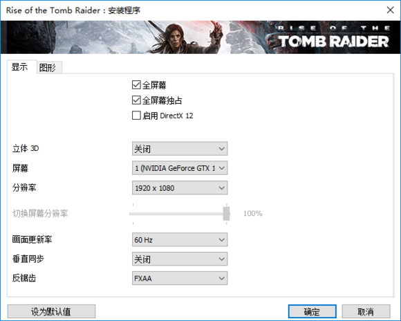 分辨率选择1080P,画质选择中特效,抗锯齿为FXAA,关闭垂直同步