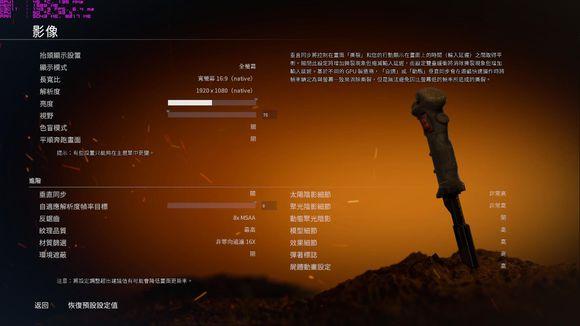 分辨率选择1080P,画调节至最高,抗锯齿为8x MSAA,关闭垂直同步