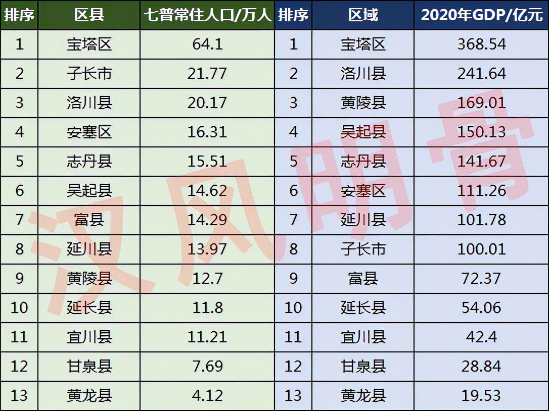 延安人口分布图:宝塔区64.1万,吴起县14.62万