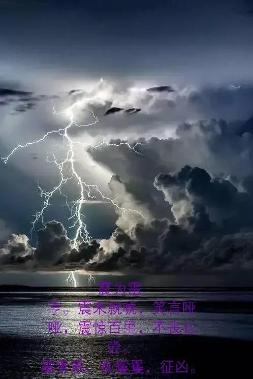 震为雷:震卦重雷交叠,相与往来,震而动起出。震动,震惊鸣叫,惊惕,再三思考,好动。建功立业,声名大振。森林,树林。八纯卦,吉顺而有波折,肝旺易怒,惊恐,肝病,抽筋,伤脾胃。可见巨雷连击,是震卦的卦象。君子观此卦象,从而戒惧恐惧,修省其身。重雷发向,千里传声,有惊无险之象,亦有变动之意。靁,阴阳薄动,靁雨生物者也。阴阳合为雷。雷者,阴中之阳也。雷以动之,风以散之,雨以润之。阴阳相薄为雷。天下应之如雷霆。