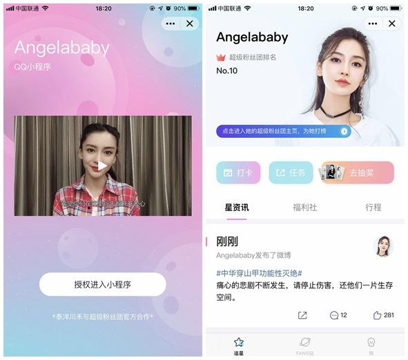 连Angelababy都入驻了小程序,baby的粉丝有福了,不用下载APP,就能帮自己的爱豆打榜,还有各种福利社,简直太棒了。