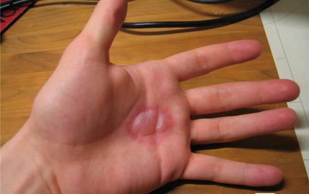 如果面积很小,只有一两公分,可以涂抹药膏,不要刺破水泡,过几天水泡就会自动消了,如果面积较大或位置很容易被磨破,可以去医院找专业医师处理,通常他们会用针刺破一小口,让里面的液体流出来,这样能保护伤口、减少感染。