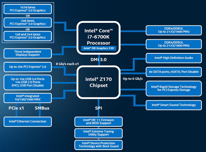 同时,我们来看一下现代系统的结构:以Intel为例子,传统意义上的北桥芯片现在已经集成在了CPU之内,同时CPU对外引出几十条PCIE的通道。传统意义上南桥也变为了“平台路径控制器”(PCH)