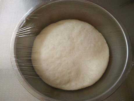 第六步,用温水揉成一个软硬适中的面团,盖上保鲜膜,开始发酵;