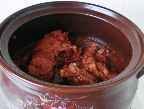 第三步,砂锅中添上清水,放入切好的肉块,开始煮,煮开后,撇去浮沫;