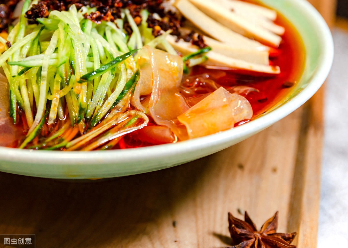 4.将调好的酱汁倒在豆腐丝当中搅拌均匀即可食用。