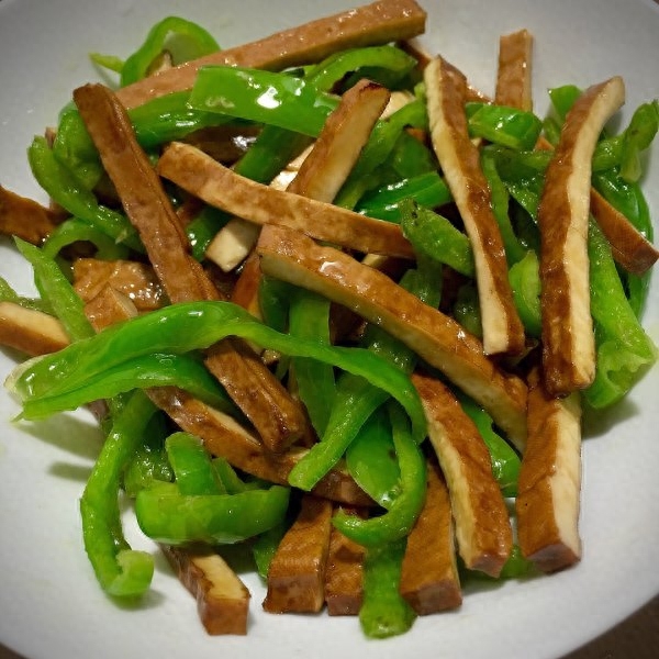 食材准备:青辣椒,红辣椒,干豆腐,盐,白糖,味精,食用油。