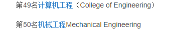 在百科中列出了该校进入全美前50名的专业,计算机工程位列第49名。