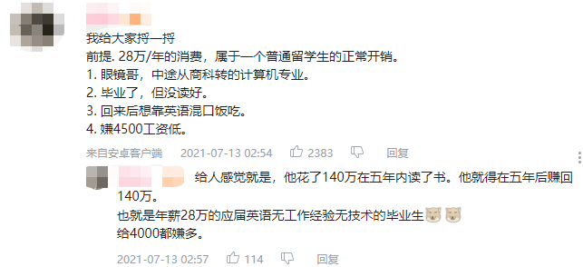 另外,据这名海归自己透露,留学前前后后共花了140万: