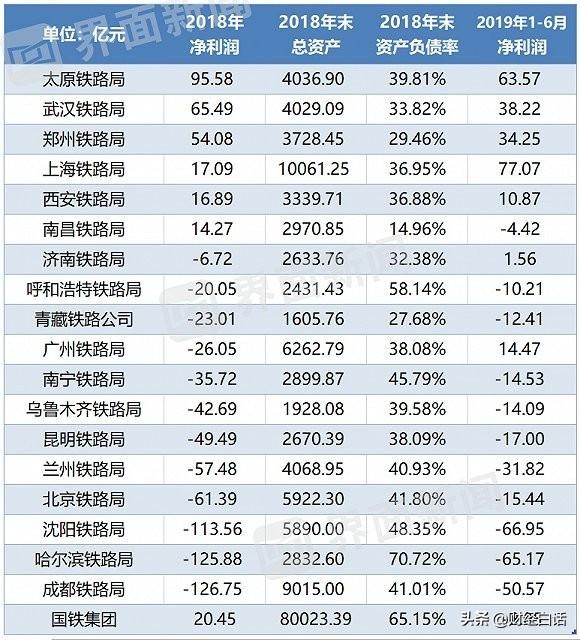 其中18个铁路局,有12个在亏损,只有6个盈利。