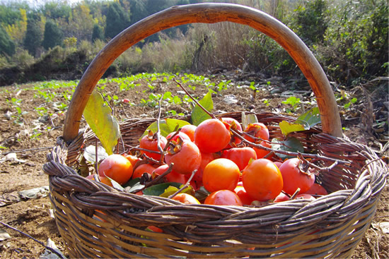 果实催熟法说的就是用果实来帮助柿子催熟。早在宋朝欧阳修就在《归田录》中写道:“今唐邓间多大柿,其初生涩,坚实如石。凡百十柿以一榠樝置其中,则红熟烂如泥而可食。土人谓之烘柿者,非用火,乃用此尔。”榠樝也就是我们今天所说的木瓜,欧阳修提到的这个办法就是将百十个柿子和已经成熟的木瓜放置在一起,通过成熟的木瓜来起到给柿子催熟的效果。