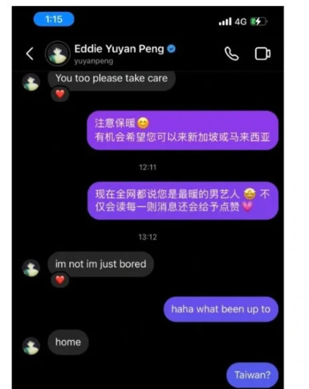 事情在网上传开后,让“彭于晏ins”关键字登上微博热搜,大批网民看到彭于晏回应,留言直呼:“好有趣救命,我也要去私信”、“彭于晏在ins上的回复绝了”、“每天看彭于晏的ins都快有一种和他同居很久的错觉了”等,贴心程度被称为“男彭友”。