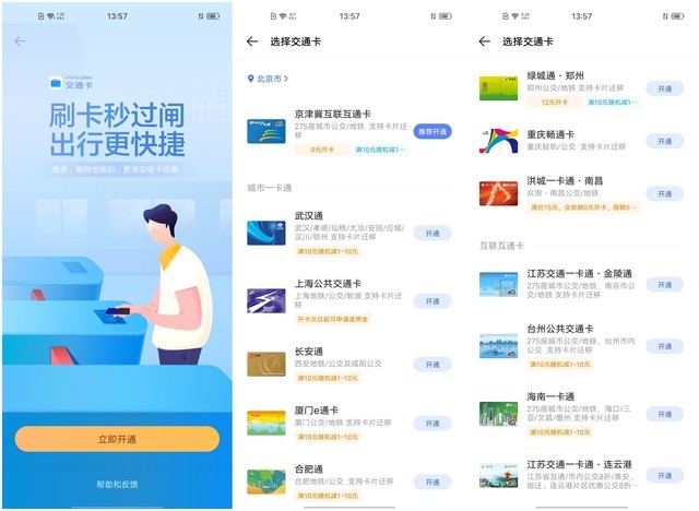 NFC交通卡实现原理是利用手机NFC功能模拟“交通联合卡”,“交通联合卡”在国内已经覆盖超过300多个城市,对于不支持“交通联合卡”的城市,手机厂商也实现了诸如“长安通”“合肥通”“武汉通”等地方交通卡的支持。