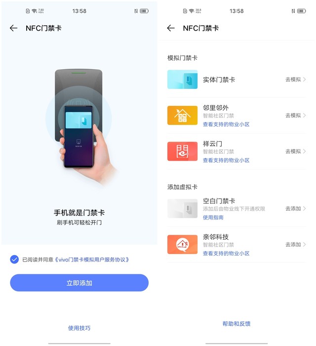 很多的小区为了便捷业主的操作,使用NFC门禁卡来简化开门流程。但NFC门禁卡和要是一样会存在“忘带”的问题,手机NFC功能通过模拟门禁卡,出门不用带门禁卡,使用手机就可以轻松开门,相较于独立的NFC门禁卡,手机更为安全可靠。