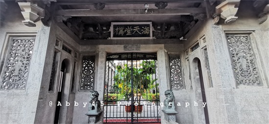 3、鼓浪屿上唯一按照中轴线对称布局的别墅建筑群:海天堂构,是菲律宾华侨黄秀烺购得租界洋人俱乐部原址所建,。是中西方文化结合的典范之作。门楼是典型中国传统式样,重檐斗拱、飞檐翘角。这种中国屋顶压住西洋主体的建筑。