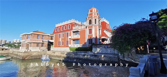 2、鼓浪屿的标志建筑之一:八卦楼,红色圆顶高10米,有8道棱线置于八边形的平台上,顶窗呈四面八方二十四向,故称“八卦楼”,是厦门近代建筑的代表。主人林鹤寿为盖楼致破产境地。
