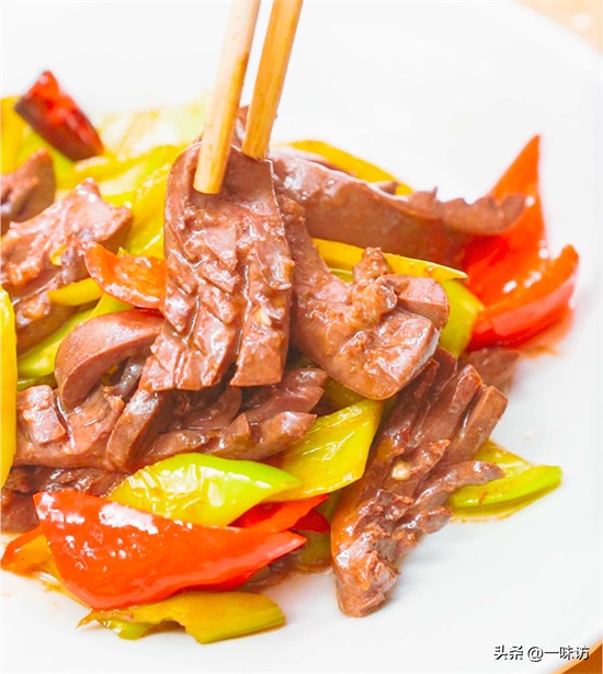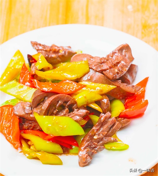 青红椒作为配菜,增加了这道菜的色泽,看起来更加有食欲。油炸腰花时,快速拨散,断生即可,切记时间不能太长,不然腰花的口感会变老。