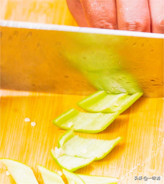 然后切成大小均匀的条状,加入料酒抓拌均匀,腌制五分钟左右,这样更容易去除腥味和臊味。