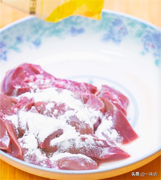 腌制好的腰花我们给它撒上生粉,抓拌均匀,以便下一步的油炸。