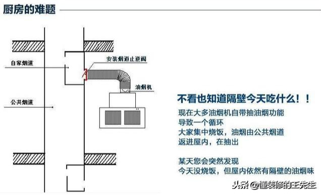总之,除了选购品牌的烟机之外,就是两点可以避免串烟:一、不破坏集中烟道,二、安装止回阀。