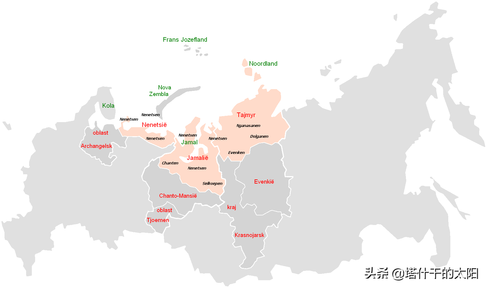 涅涅茨人分布地区(粉红色