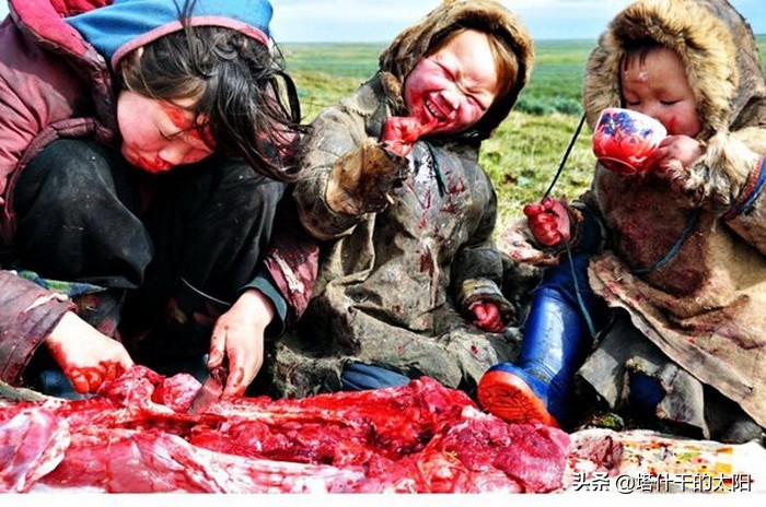 因为居住在北极圈苦寒之地,少蔬菜、水果等绿色食物,在完全没有维生素摄入的情况下,涅涅茨人不得不通过喝生血,吃生肉来补充营养,这种饮食方式在完全没有维生素的情况下是可行且唯一的。