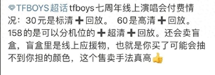 大家都知道线下演唱会的门票价格都是380起步的,想买的还要去花三百多去充高会,一些经济能力不好的粉丝都承担不起。而现今爆出来的两位数门票价格也是很良心的了,大部分的粉丝可能都会买单。