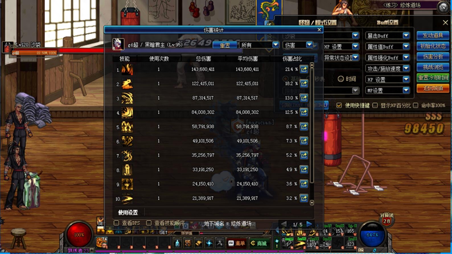 最后总结:在虚幻空间辅助套装3件固定的情况下,鬼泣带贤者之欲和哈林布甲打出的伤害比较高(这是在什么药都不吃的情况下)