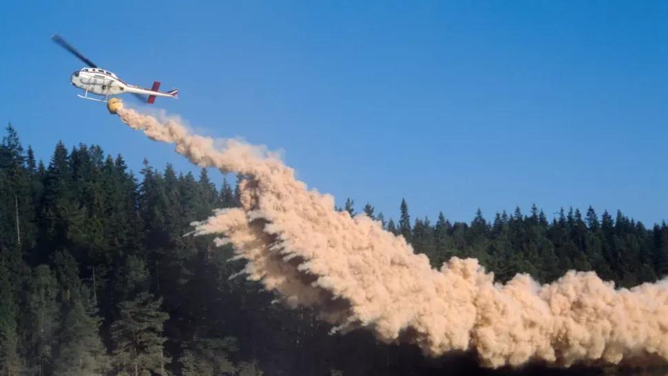 在瑞典哥德堡附近,一架直升飞机将石灰倒入湖中以中和酸B