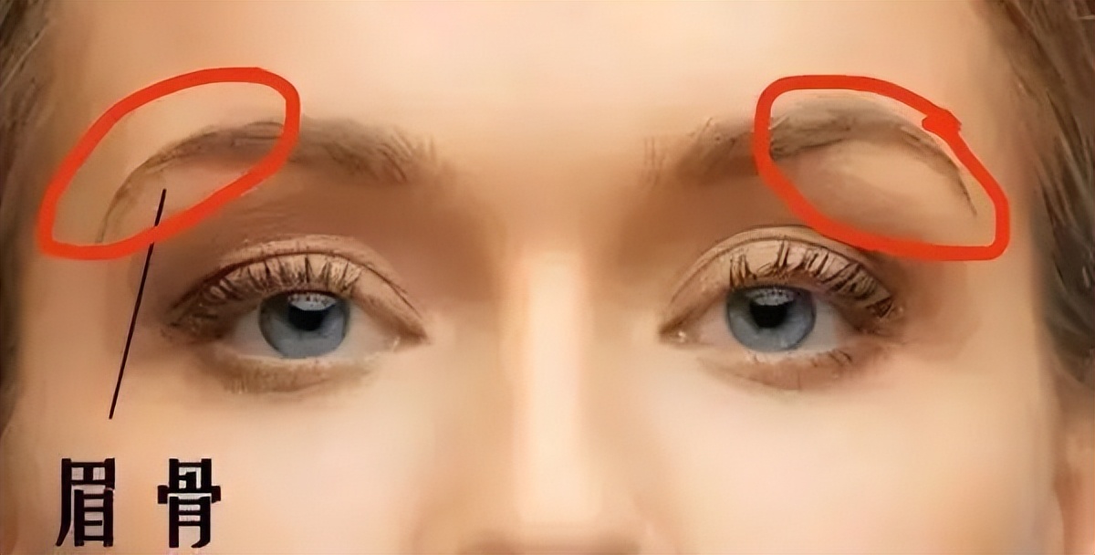 首先我们需要知道的是眉骨的位置,是眼眶上缘的弓形隆起,也叫拱形骨。拱骨内的骨头是空心的,也就是额窦。眉弓的运行路线与眉骨相同,其上被皮肤覆盖表现为眉毛的走向。