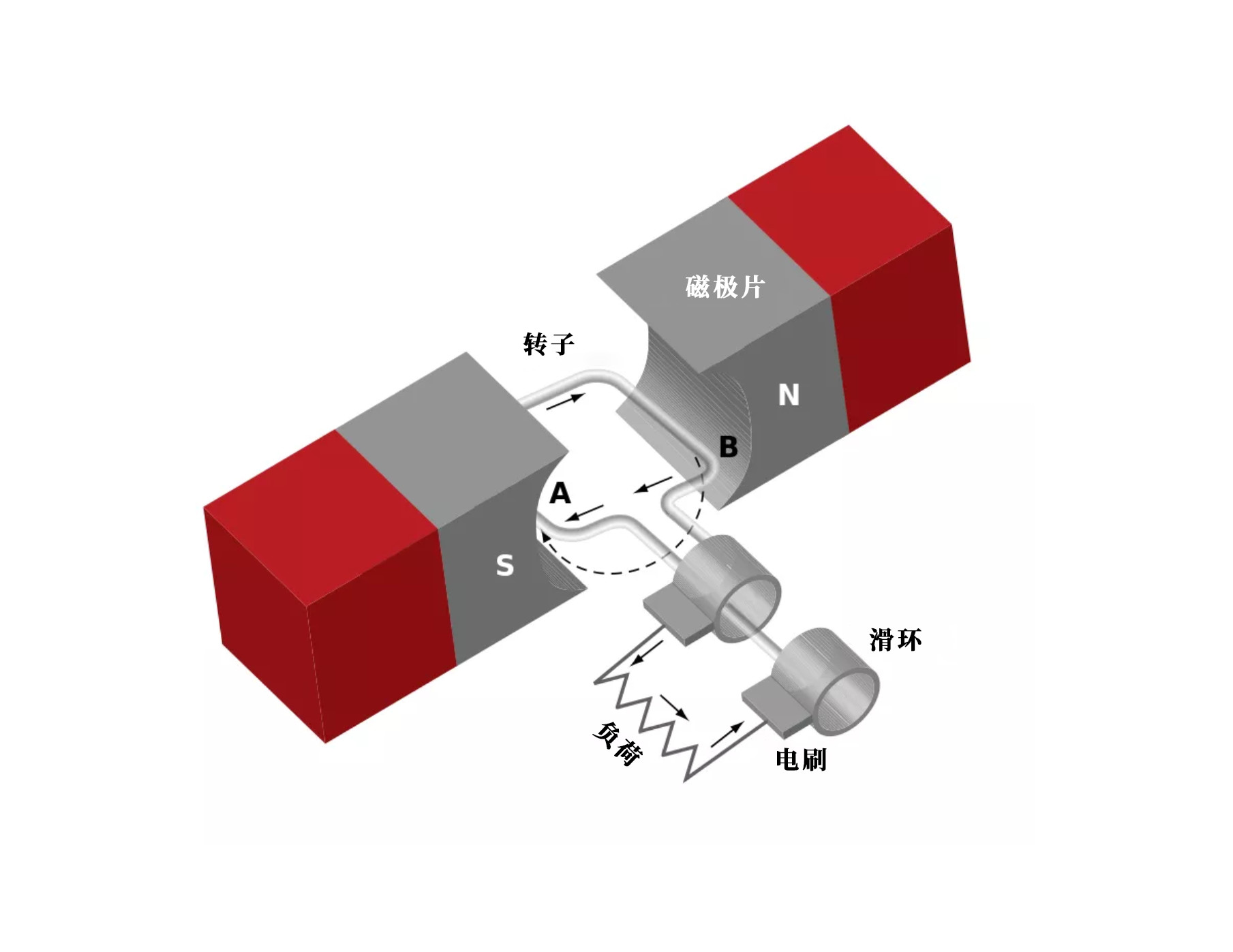 具有电枢和磁铁的交流电动机可视化图