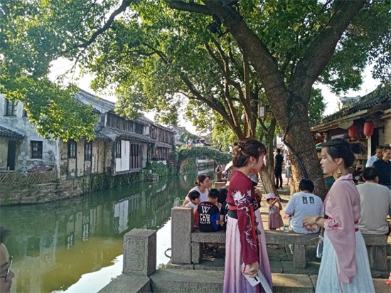 2020年8月9号到周庄。周庄位于苏州昆山市,有”中国第一水乡”之誉,是国家首批5A级景区。周庄始建于1086年(北宋元佑元年),因邑人周迪功先生捐地修全福寺而得名。春秋时为吴王少子摇的封地,名为贞丰里。