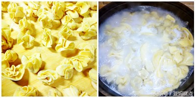 5、锅里烧热水,放入包好的馄饨,大火煮至熟;自己擀的皮要多煮一会儿,买的云吞皮更薄,时间短点儿,总之是煮熟即可;